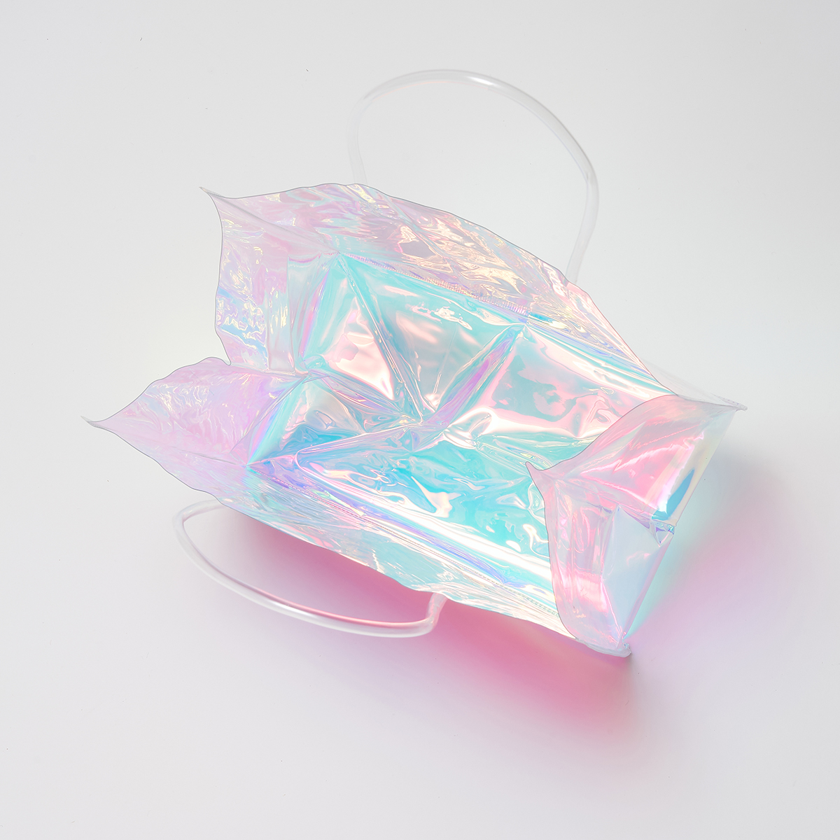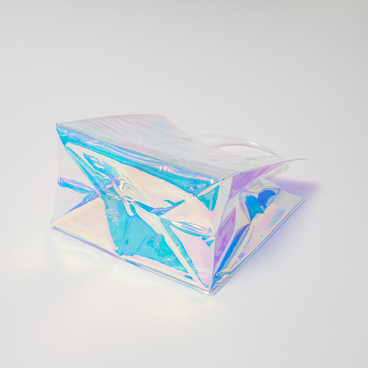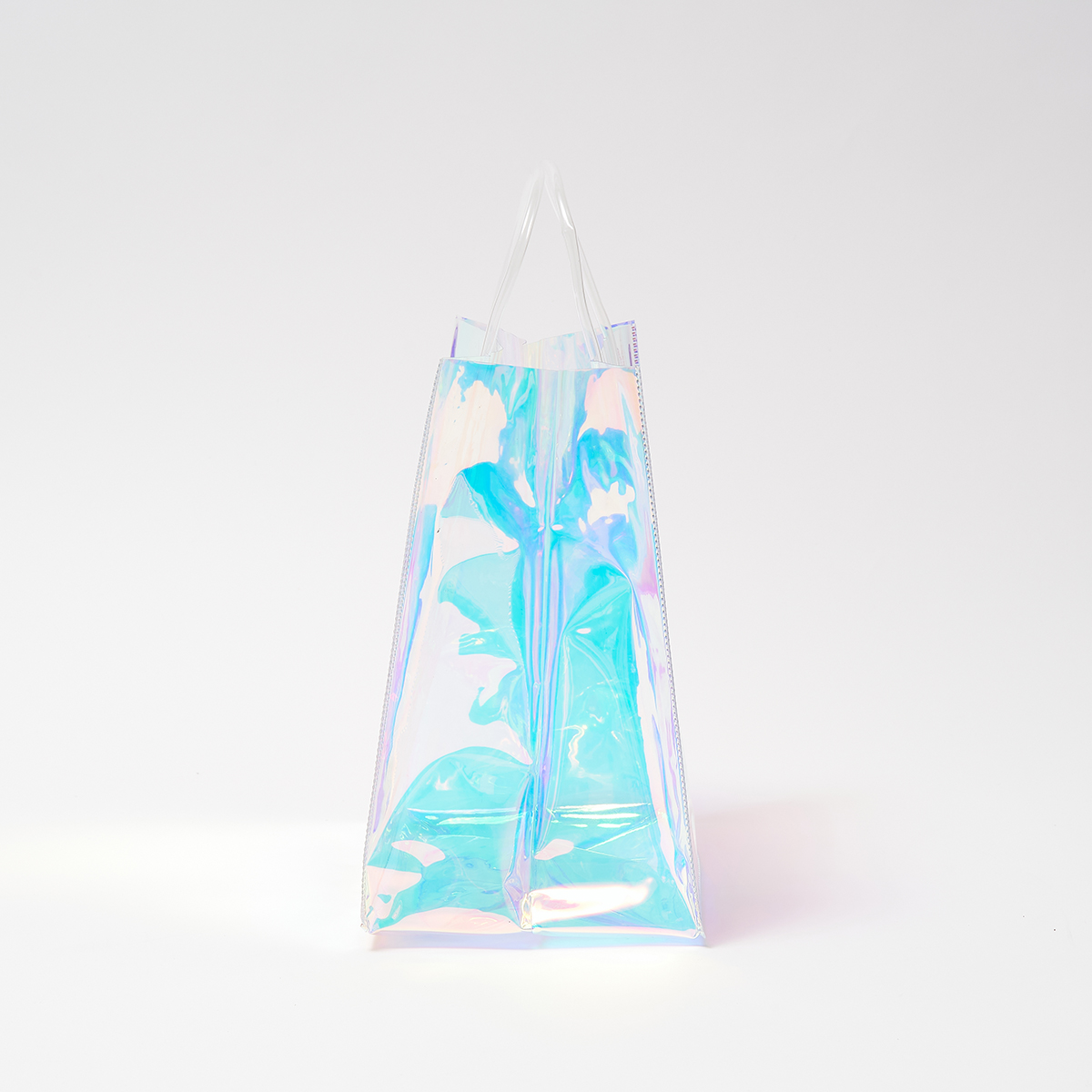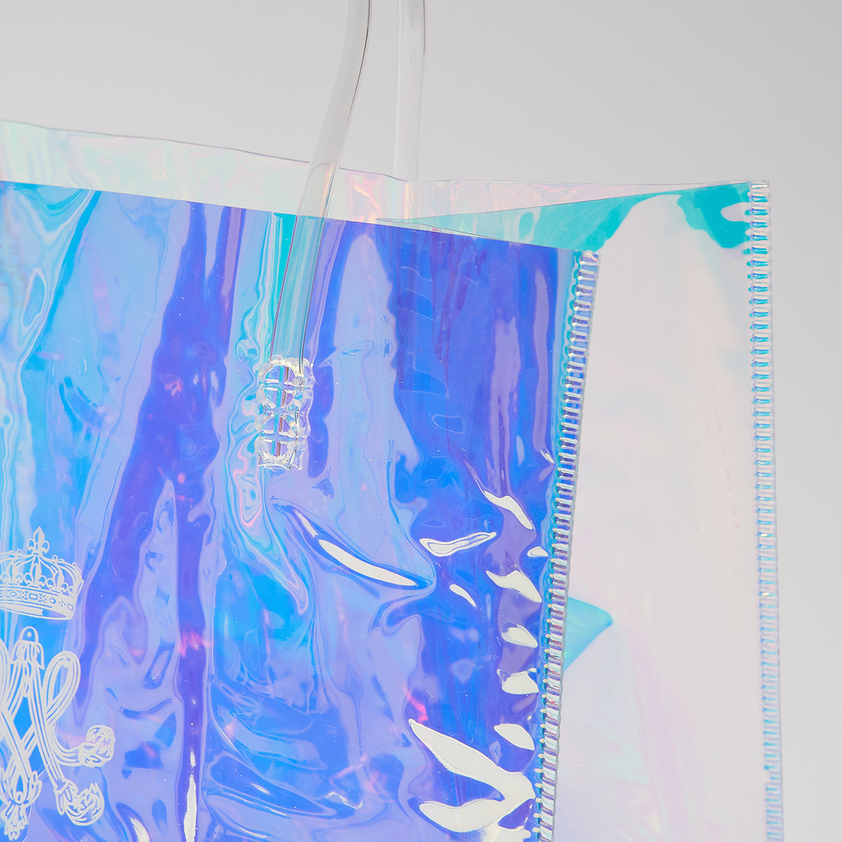 ニナスのオリジナルロゴをあしらった、オーロラカラーに輝くエレガントなクリアバッグです。